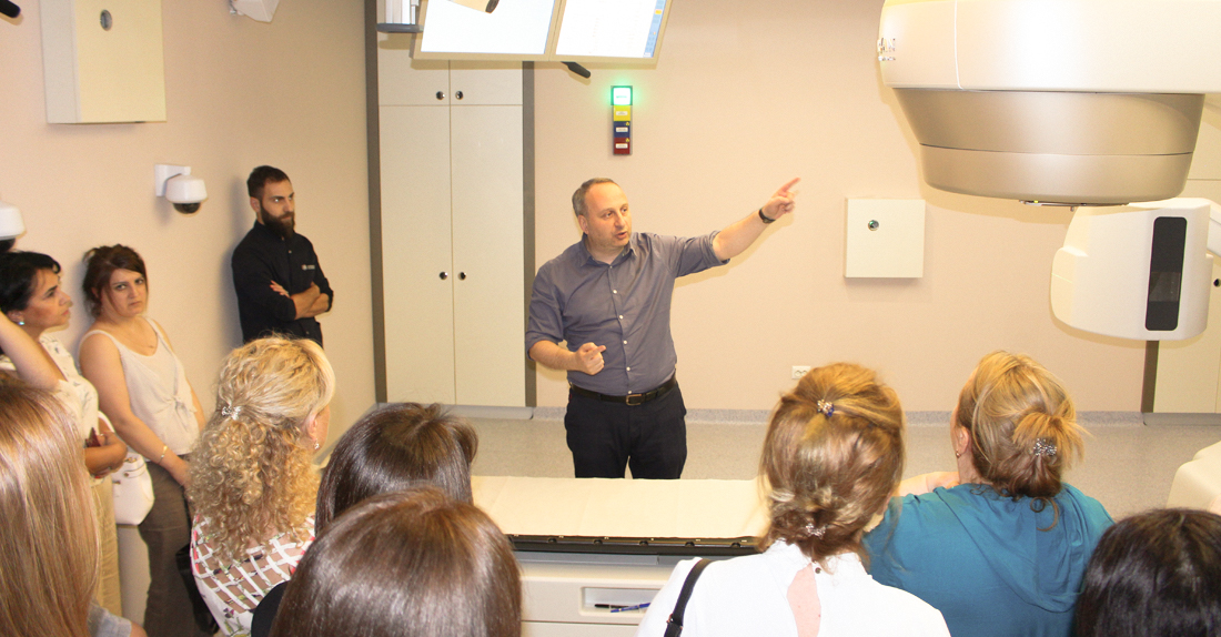 სტუმრებმა იხილეს ამერიკული კომპანია Varian-ის ულტრათანამედროვე და მაქსიმალურად დახვეწილი, კლინიკურად ეკვივალენტური (ტყუპი), უახლესი სხივური ამაჩქარებლები.