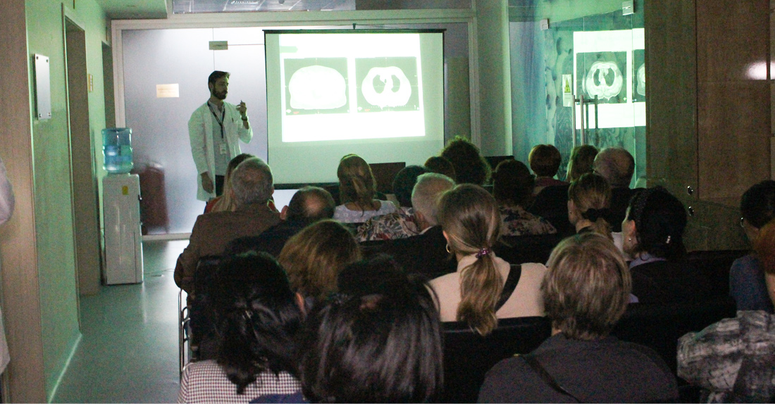 სტუმრებმა დაათვალიერეს რადიოთერაპიის დეპარტამენტი, ასევე ამერიკული კომპანია Varian-ის ულტრათანამედროვე და მაქსიმალურად დახვეწილი, კლინიკურად ეკვივალენტური (ტყუპი), უახლესი სხივური ამაჩქარებლები. სპეციალურად ღონისძიებისთვის რადიოთერაპიის დეპარტამენტის რადიაციულმა ონკოლოგებმა, ბრაქითერაპევტებმა ირინა ჯობავამ და ლაშა გოგინაშვილმა წარმოადგინეს და მიმოიხილეს რამდენიმე საინტერესო კლინიკური შემთხვევა.