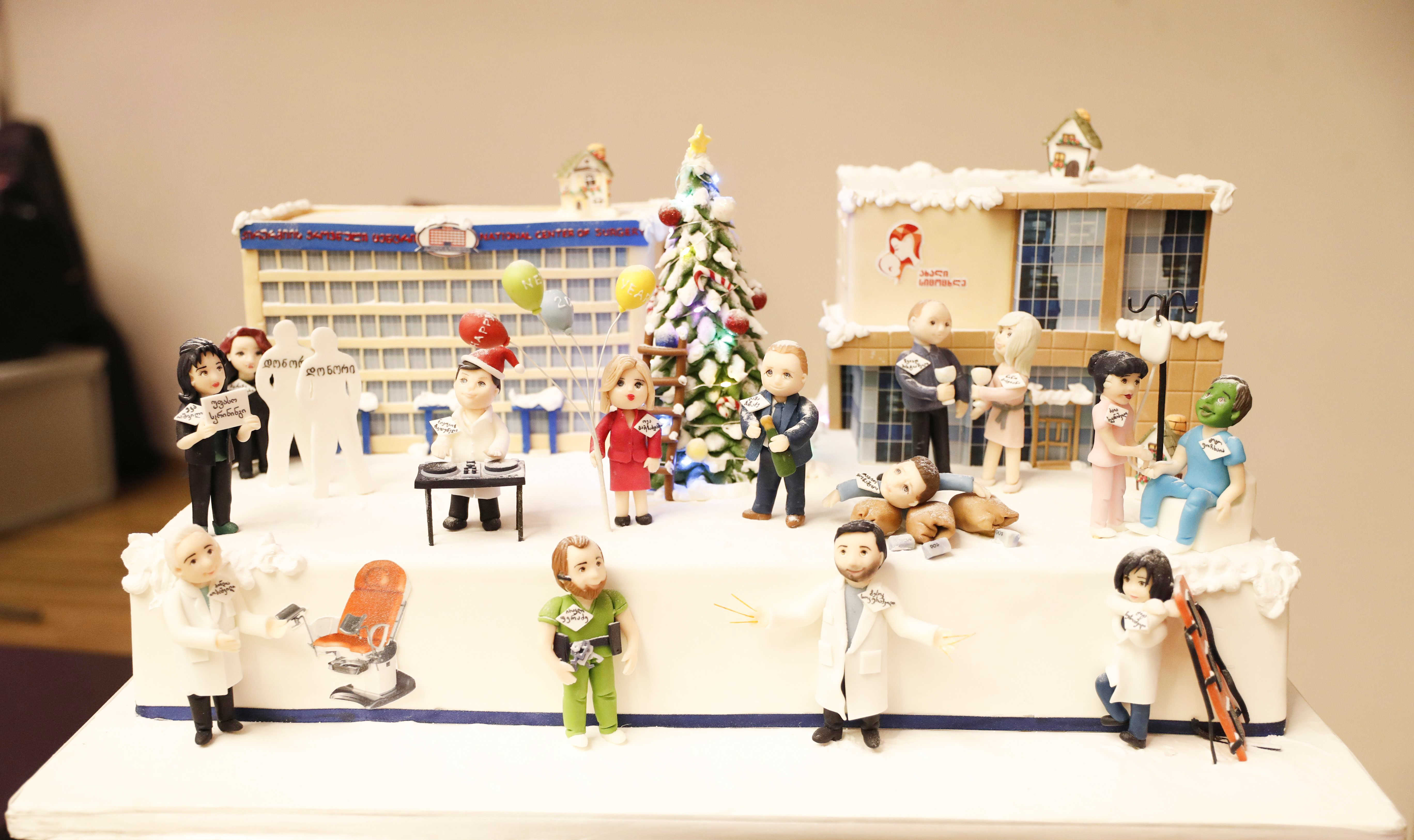 The cake was very creative. The delicious biscuit was in the shape of National Center of Surgery and the clinic "New Life's" exterior, whereas the yard was adorned with mini models, sweet figurines of department heads and the clinic’s leaders.