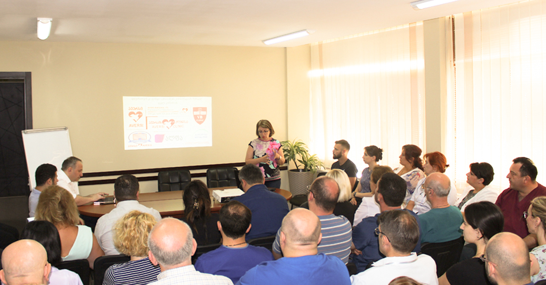 В конференц-зале Национального Центра Хирургии, руководитель реабилитационного центра клиники "Аверси", Майя Куртанидзе провела презентацию о благотворительном фонде.